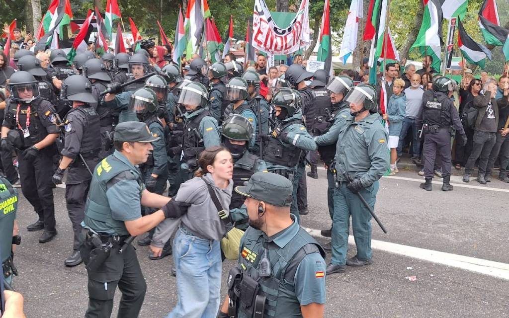 Baixo fortes medidas de seguridade entre Policía Local, Garda Civil e efectivos antimotines, os manifestantes colocaron unha ampla barreira humana contendo a arremetida das forzas de seguridade, que separaron a varios manifestantes. Ás 17:30 horas anunciouse a suspensión definitiva desta etapa, anuncio que provocou un gran regocixo entre o/as manifestantes.