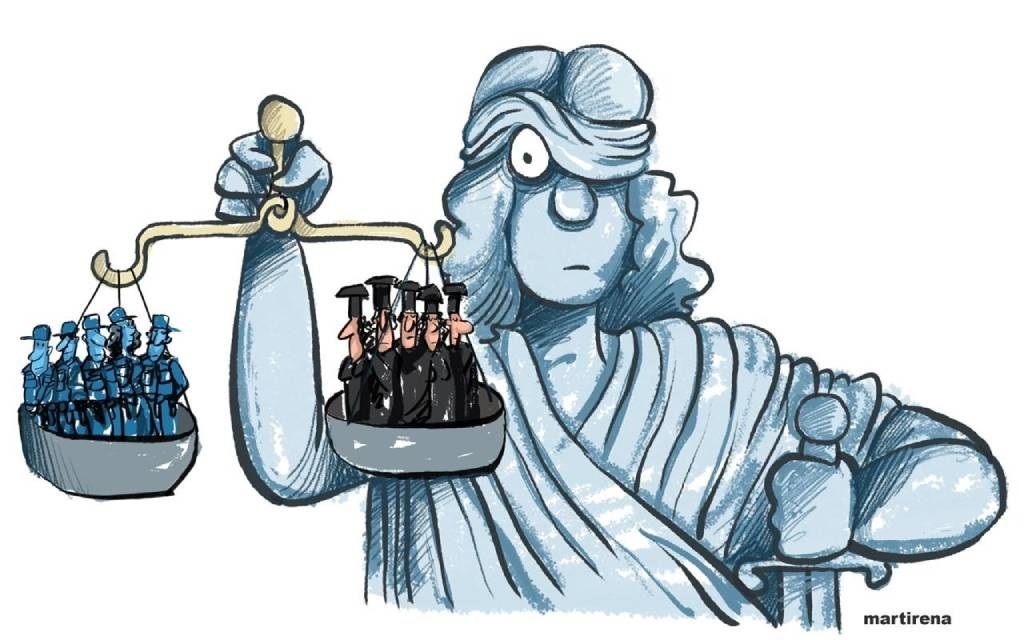 Respecto a os xuíces e fiscais, a actual xudicatura española, de acordo con os datos que xorden publicamente con frecuencia desde o seu propio seo, sofre un alto grao de corporativismo e endogamia, o que non fai moi confiable que a previsión de ser investigado e xulgado desde un nivel superior devindica nun trato similar ao que se aplica ao resto de cidadáns. Polo que sen chegar ao nivel do poder do Parlamento Británico e outros (Australia, India, Malta, USA, etc) que poden chegar a depoñer a algúns xuíces, algo terá e poderá facerse para corrixir os excesos xudiciais que a diario e de forma ás veces moi evidente coñecemos e outros que só saen á luz publica cando xa non teñen remedio. Constatar que o funcionamento do órgano disciplinario español (CGPJ) está a axudar a corrixir pouco ou nada de situacións que esixirían a súa intervención de oficio de forma moi evidente. Todo apunta que boa parte da solución pasa pola mellora do sistema de acceso á xudicatura, quizá tamén que en determinados niveis houbese participación directa do cidadán mediante votación, aínda cando os candidatos estivesen limitados a un censo pechado con titulación e experiencia profesional adecuada.