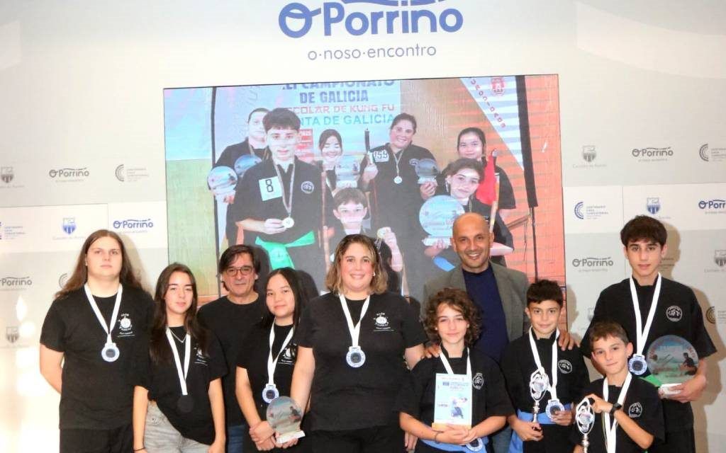 A todo isto engádense outros primeiros e terceiros postos conseguidos na III Copa de Galicia de Kung Fu por Sabela, Bruno, Irene, Nerea, My Ngoc e Daniela e tamén no XIX Campionato Galego Escolar Individual de Kung Fu, logrando o ouro Sabela e o bronce My Ngoc. “É unha enorme satisfacción para min, como alcalde do Porriño, recibir a estes mozos e mozas que, con tanto esforzo e dedicación, están levando o nome do noso concello ao máis alto no mundo do Kung Fu. Sodes un exemplo de superación, constancia e compromiso, e este recoñecemento é máis que merecido. Desde o Concello seguiremos apoiando ao deporte base e aos clubs locais, porque cremos no talento que temos na nosa vila”, sinalou Lorenzo.