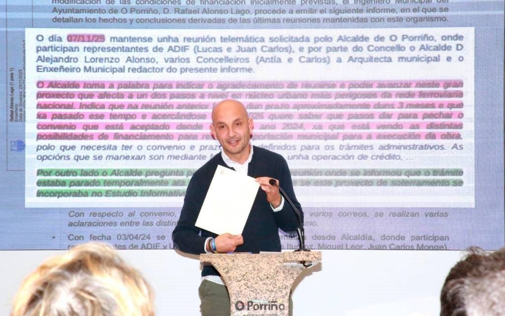O Porriño | O alcalde do Porriño Alejandro Lorenzo vén de explicar a situación actual da supresión do paso a nivel que parte en dous a vila dende fai máis de medio século. “Lamento profundamente esta nova situación, que implica a paralización indefinida desta actuación e demanda histórica de toda a veciñanza. Logo de ter xa o proxecto redactado e o convenio listo para ser aprobado polo pleno, esta é unha noticia nefasta coa que nos sentimos manipulados, enganados e esquecidos. O Concello do Porriño asumiu responsabilidade e compromisos históricos e agora o Goberno de España rompe unilateralmente un acordo técnico xa pechado”, sinalou o rexedor.