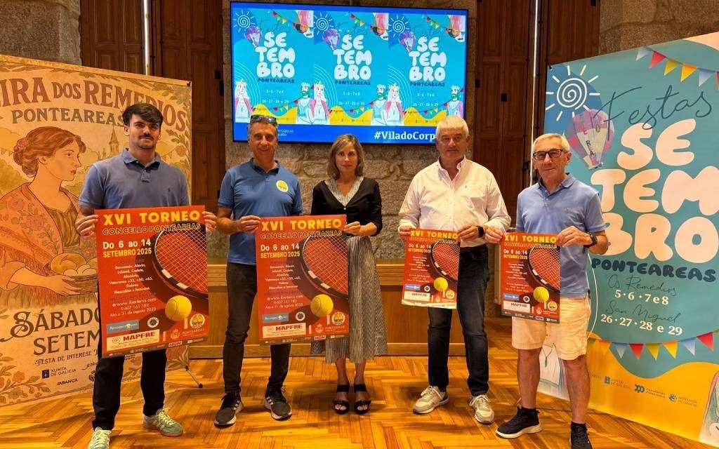 Ponteareas | Coas festas do mes de setembro chega a Ponteareas o XVI Torneo de tenis Concello de Ponteareas. A alcaldesa, Nava Castro, o tenente de alcaldesa, Juan Carlos Glez. Carrera, e o concelleiro de Deportes, Nicolás Rodríguez, presentaron xunto ao Club Tenis Ponteareas unha nova edición que terá lugar do 6 ao 14 de setembro.