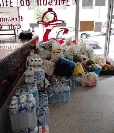 O restaurante Mesón do Manolo, da rúa Greco do barrio de O Couto, é un dos varios centro de recepción de alimentos e material para os brigadistas e veciños dos pobos afectados polo incendios na provincia. Aquí chegan alimentos, bebidas, mascarillas, suero, rastrillos, cubos, lentes de protección, ropa ignifuga, comida para o gando.