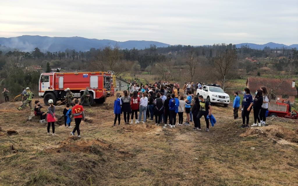 Salvaterra de Miño | O baldío de Pedra Pena de 0,7 hectáreas transformase nun bosque de frondosas de castiñeiros e cerdeiras A comunidade de Montes Fornelos da Ribeira xunto co IES de Salvaterra de Miño e ANPA Chan da Ponte transforman nun bosque de frondosas o baldío de Pedra Pena coa plantación de 150 castiñeiros e 15 cerdeiras.
