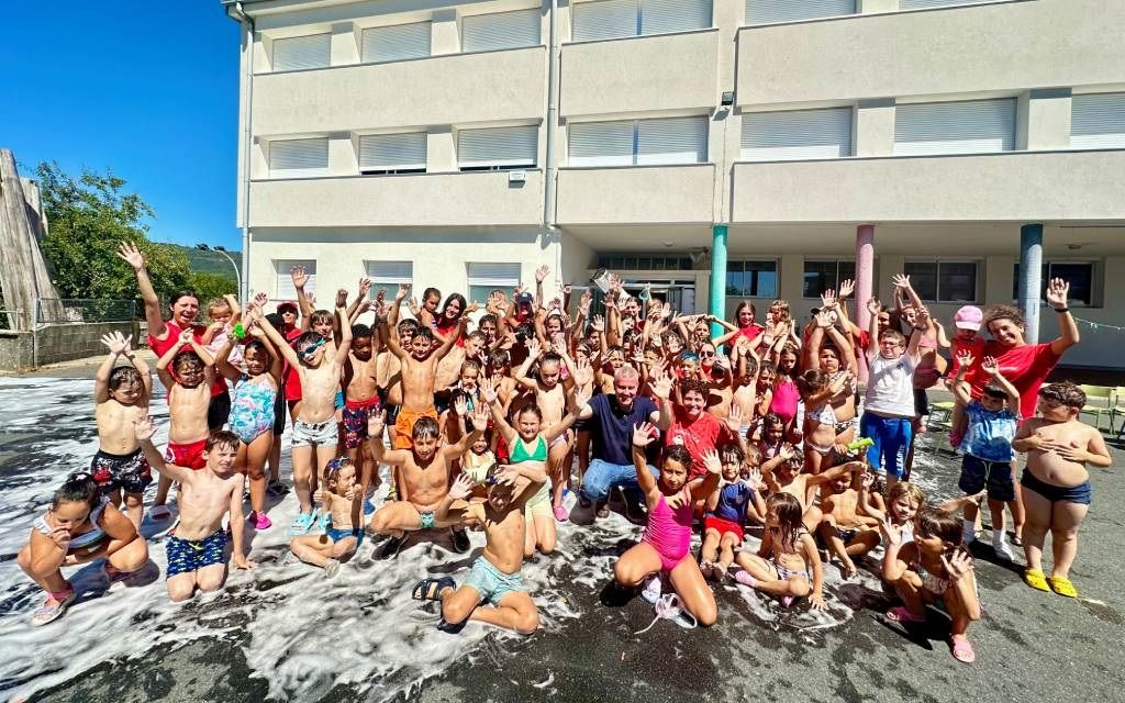A Cañiza | O Alcalde Luis Piña visitou esta mañá aos nenos e nenas da primeira quenda do Campamento Urbano 2025, que rematou hoxe cunha divertida festa da escuma.