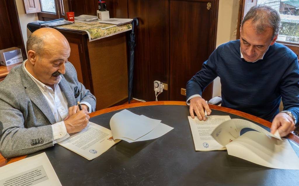 Tui | O alcalde de Tui, Enrique Cabaleiro, e o presidente da Confederación Hidrográfica do Miño Sil, CHMS, José Antonio Quiroga, asinaron esta semana o convenio que posibilitará a construción dunha plataforma sobre o arroio Cotarel. O documento determina as condicións para o financiamento e execución desta obra que suporá un investimento de 1,5 millóns de euros, dos que o 80% será sufragado pola Confederación e o 20% restante polo Concello de Tui.