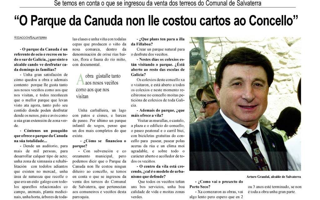 Sobre estas liñas aparece a imaxe da entrevista a Arturo Grandal que o xornal A Peneira publicou en 2007 no Especial “Parque A Canuda”.