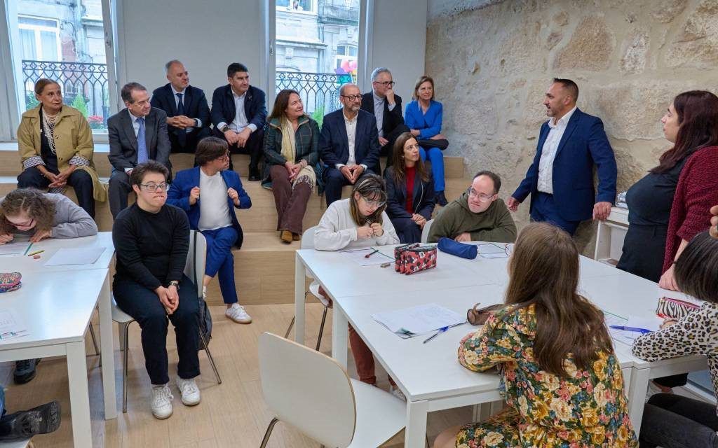Vigo | Máis dun centenar de persoas participou na mañá do venres 31 na inauguración institucional da nova sede de Down Vigo no centro histórico da cidade. Familias e persoas usuarias, empresas colaboradoras e representantes das tres administracións, local, autonómica e do Estado, festexaron a mudanza da Asociación ao centro da cidade nun edificio adquirido e rehabilitado pola Zona Franca.